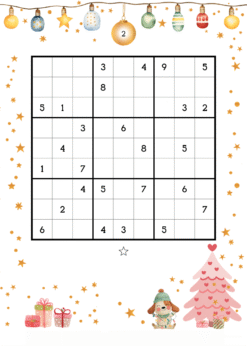 Christmas Sudoku volume 20 with mixed levels for hours of mindfulness. One puzzle per page with Christmas theme. Print these at home and enjoy hours of mindfulness. 160 puzzles with solutions. A4 size for home printing or adjust to your desired size on your printer’s settings.