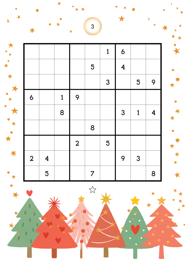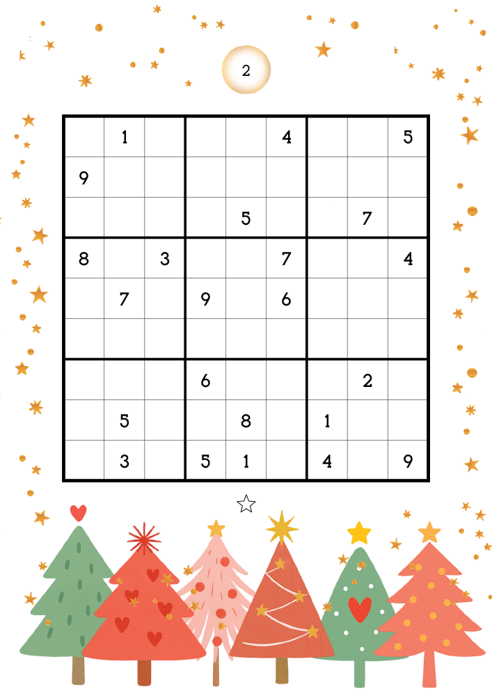 Destress, boost memory, focus and problem solving skills with Christmas Sudoku Puzzles Volume 23. Perfect for downtime and relaxation. 160 Mixed levels puzzles with solutions. Print these puzzles at home and enjoy hours of mindfulness.