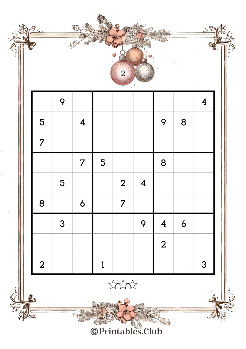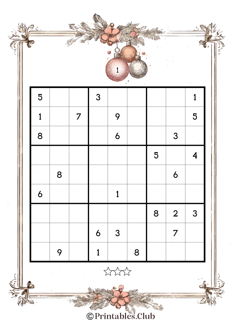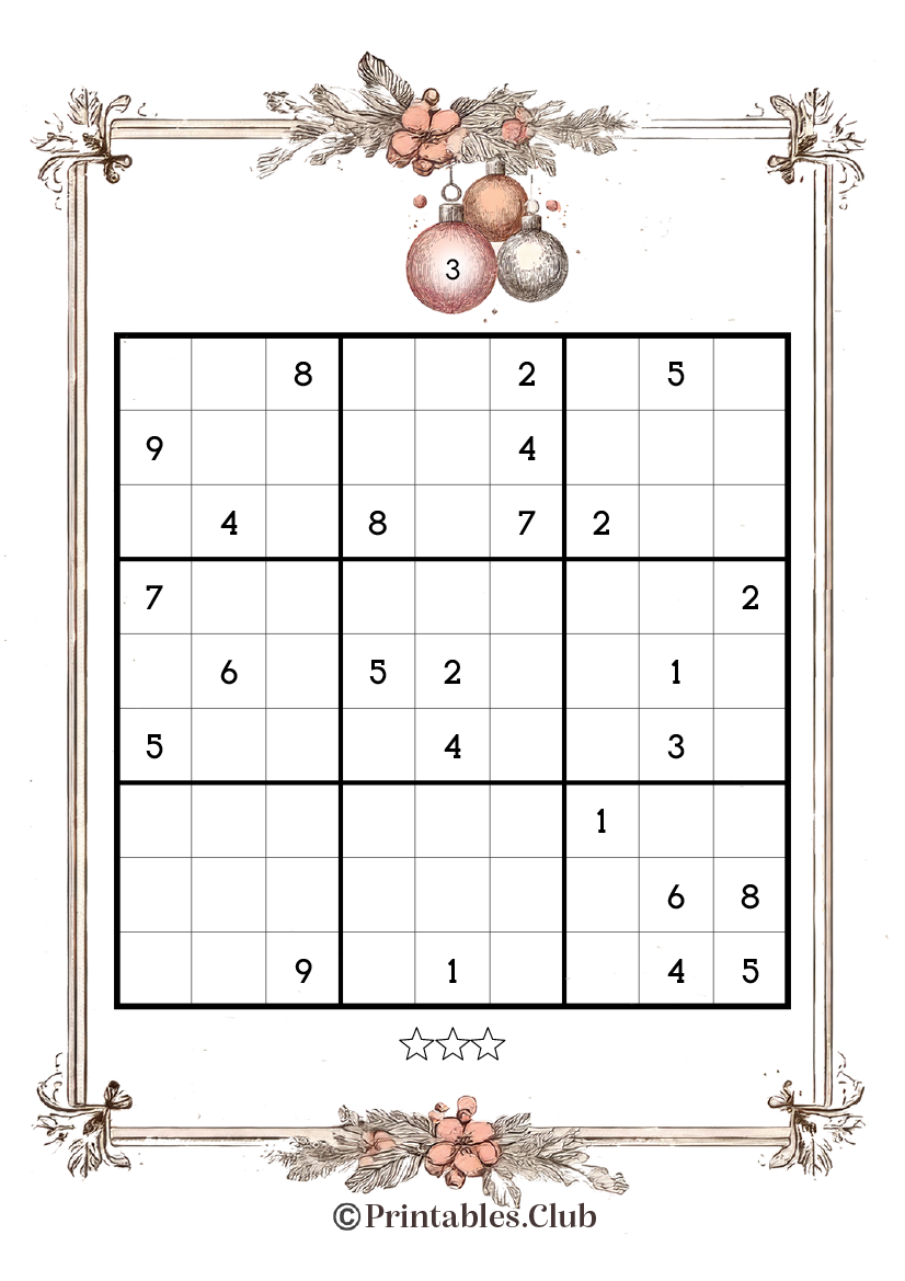 Vintage Christmas Sudoku Medium Level Free