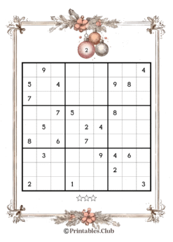 Destress, boost memory, focus and problem solving skills with Vintage Christmas Sudoku Puzzles. Perfect for downtime and relaxation. 48 Medium level puzzles with solutions. Print these puzzles at home and enjoy hours of mindfulness.