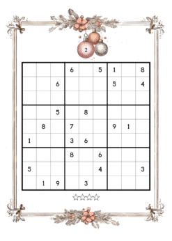 Vintage Christmas Sudoku with mixed  levels: 200 moderate to hard level puzzles with solutions.  One puzzle per page.  Print these at home and enjoy hours of mindfulness.