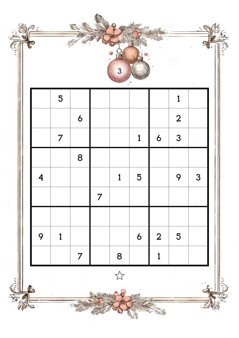 Vintage Christmas Sudoku with mixed  levels for  hours of mindfulness.  One puzzle per page with Christmas theme.  Print these at home and enjoy hours of mindfulness. 200 puzzles  with solutions.  A4 size for home printing or adjust to your desired size on your printer’s settings.